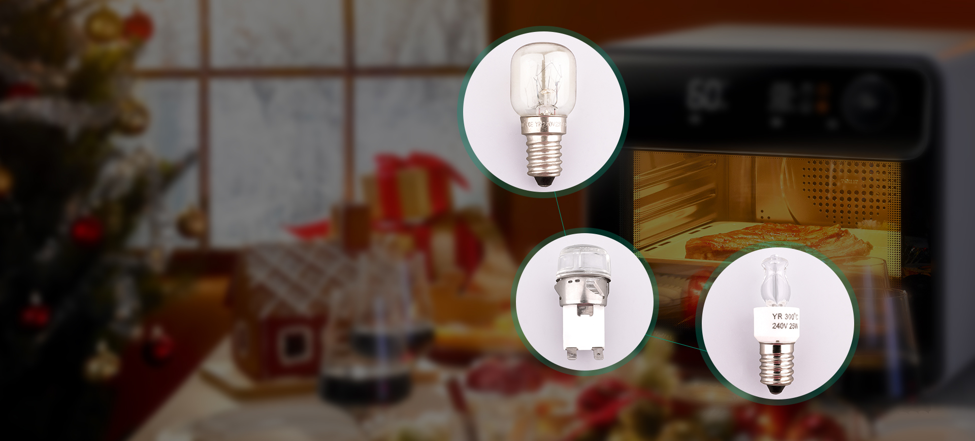 公司專業生產烤箱LED燈泡和白熾燈泡。LED燈泡有雙燈條、單燈條、白光、暖白光、黃光,其他特殊要求均可定制。燈頭主要為膠木燈頭和銅鍍鎳燈頭。燈泡可耐溫300℃。